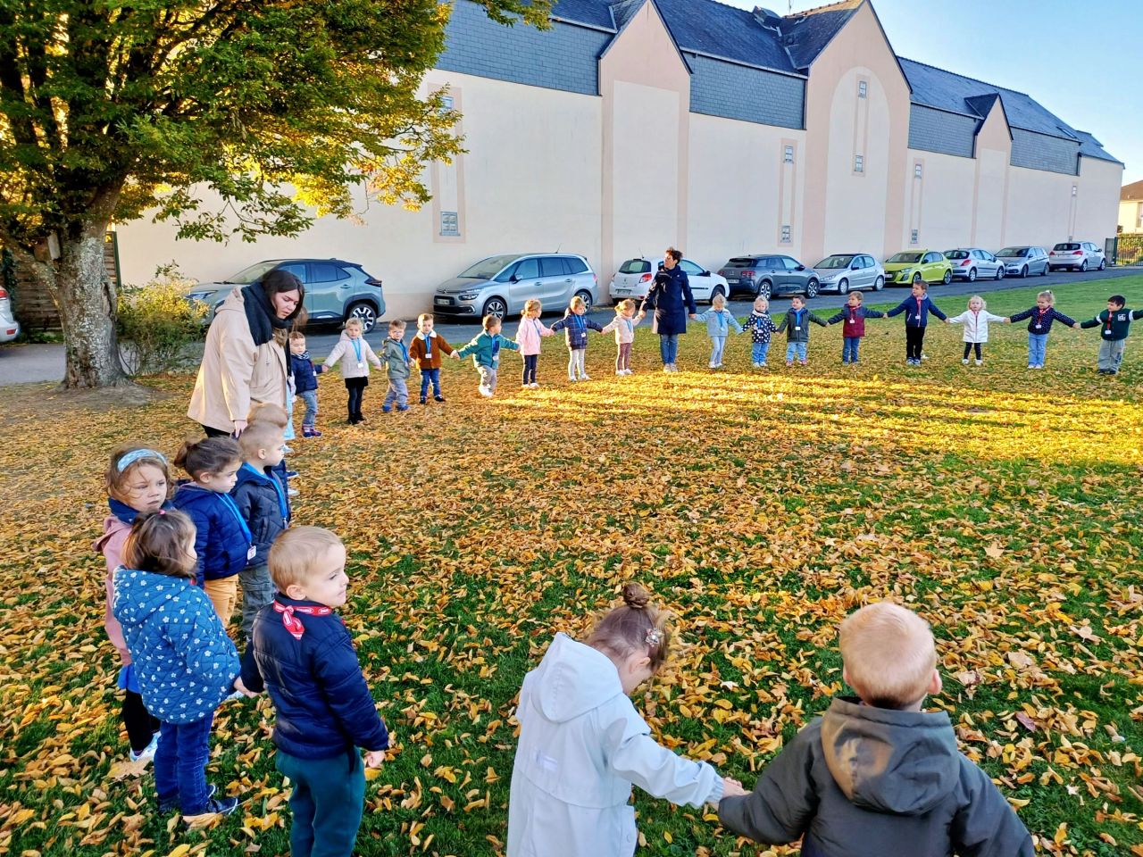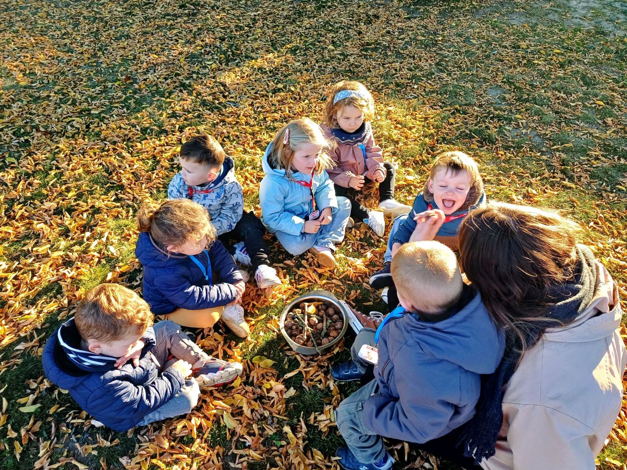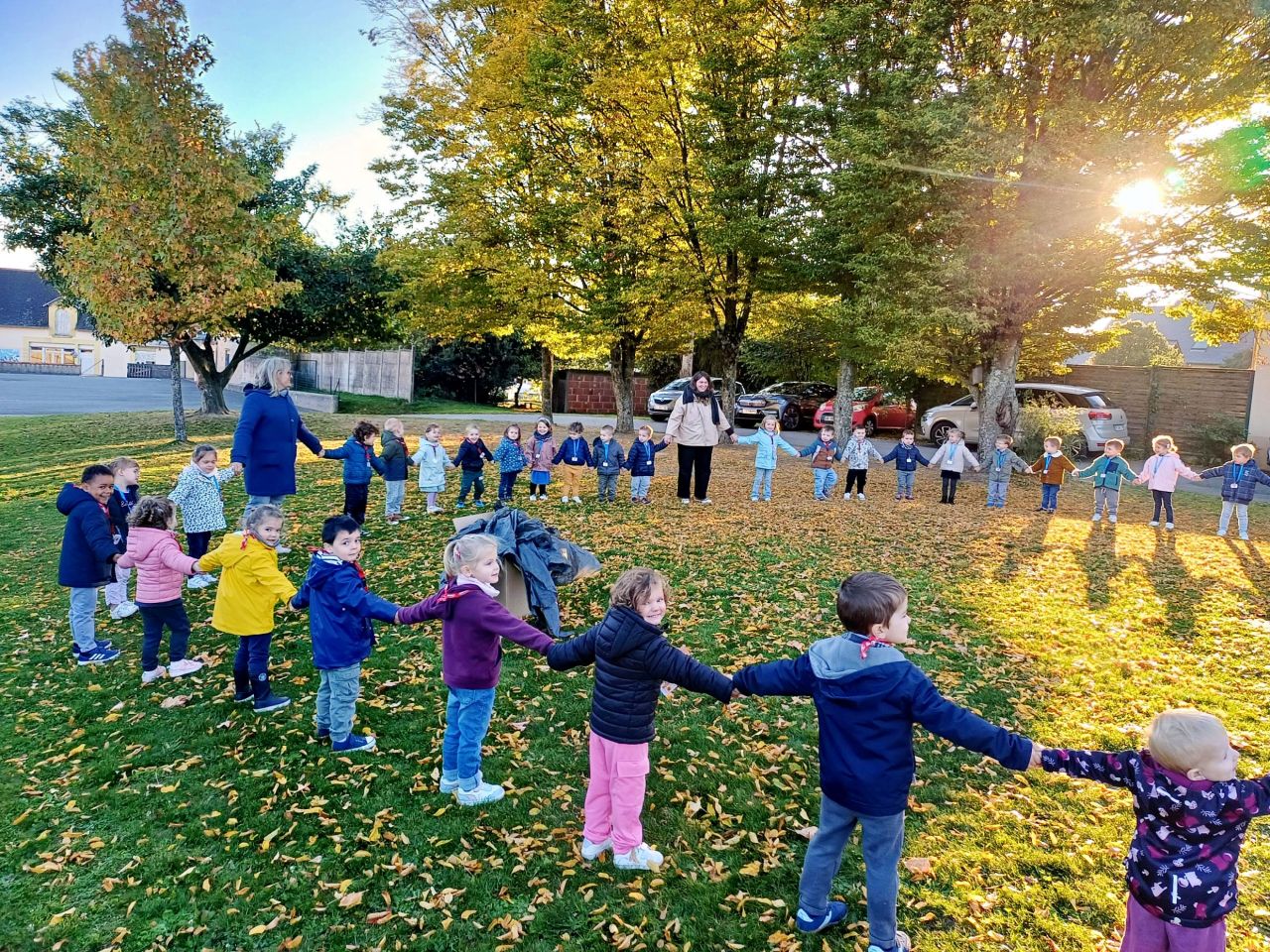 Ce matin, les élèves de Manon et Gwënola ont fait la classe dehors. Une première expérimentation qui a conquis les enfants! Au programme, découverte du vocabulaire de l'automne, landart...etc....